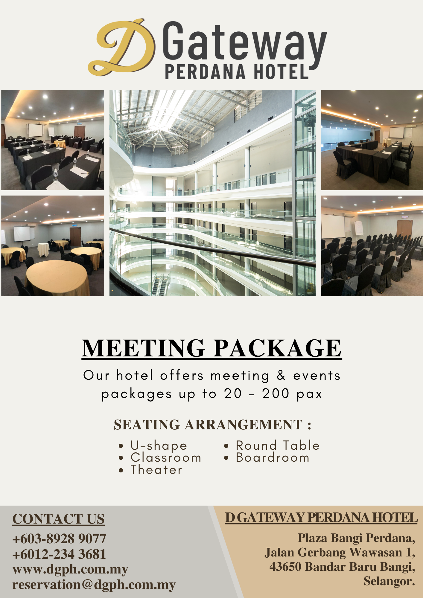 We are located strategically in the middle of major townships such as Kajang, Semenyih and Seri Kembangan which is easily accessible within 10 to 20 minutes’ drive from the hotel. It is 30 minutes to KLCC, 30 minutes to KLIA Airport; and 15 mins to Putrajaya as well as Cyberjaya.